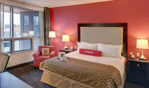 The Fluno Center is located on the UW-Madison Campus and in the heart of downtown. Offering several amenities, including a fitness center, Oros Executive Dining Room, Smitty’s Study Pub, parking, and a 24-hour Business center. Each room features a refrigerator, Keurig, 40-inch TV, and a spacious workstation. Enjoy the nearby attractions such as State Street’s pedestrian mall that has a variety of restaurants, bookstores, coffee houses, specialty shops, and entertainment options. Parking is available for an additional fee.
